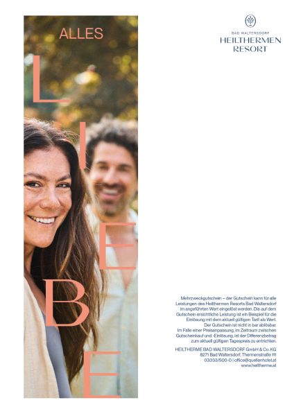 Mehrzweckgutschein – der Gutschein kann für alle Leistungen des Heilthermen Resorts Bad Waltersdorf im angeführten Wert eingelöst werden. Die auf dem Gutschein ersichtliche Leistung ist ein Beispiel für die Einlösung mit dem aktuell gültigen Tarif als Wert.